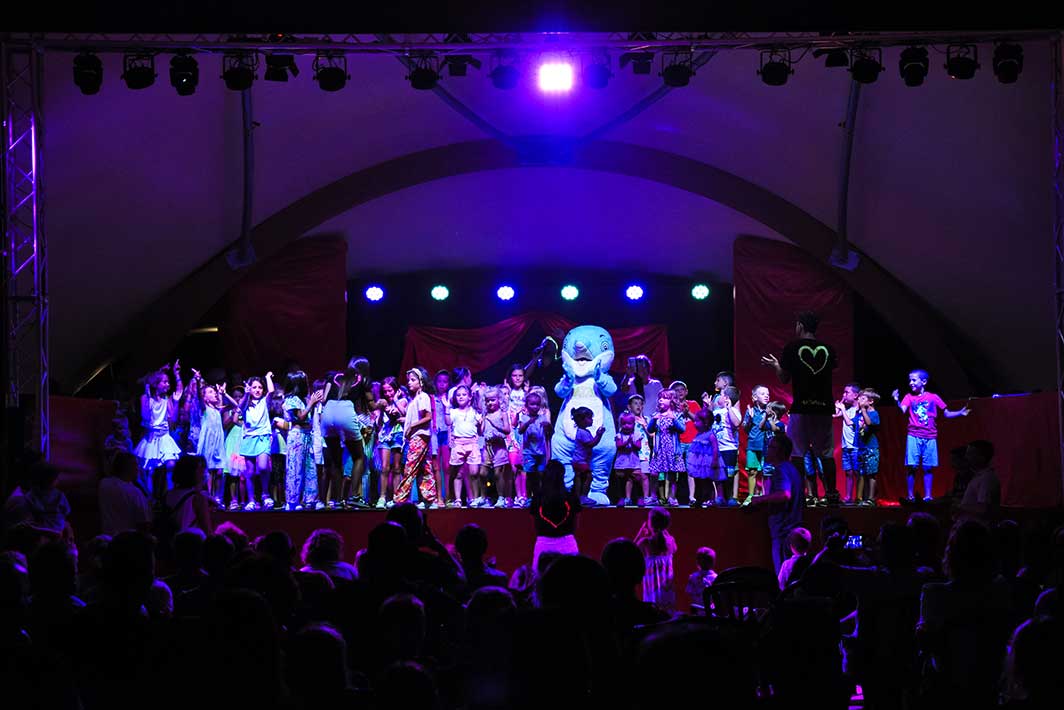 Alla sera, infine, tutti al teatro a bordo piscina: qui, dopo la baby dance tanto attesa dai più piccoli, il programma si conclude con musica, quiz e spettacoli a tema.