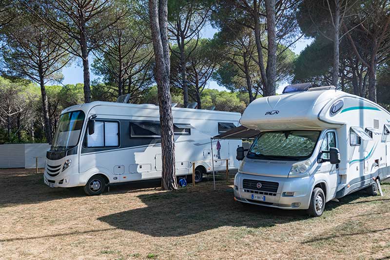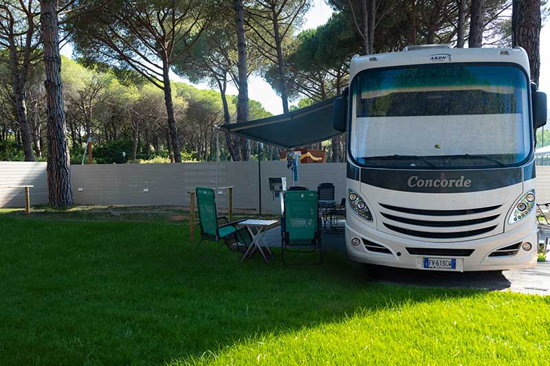 Le Piazzole Camper Stop hanno una di superficie di circa 70 mq e sono dotate di 10A di corrente.