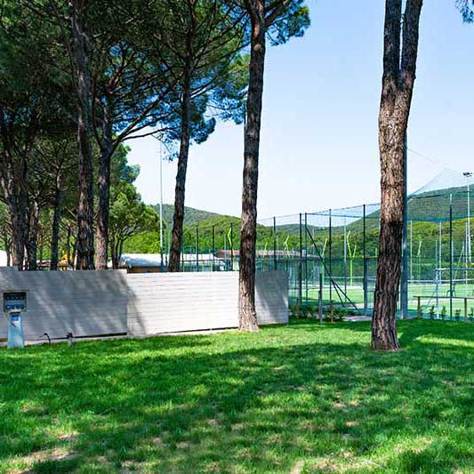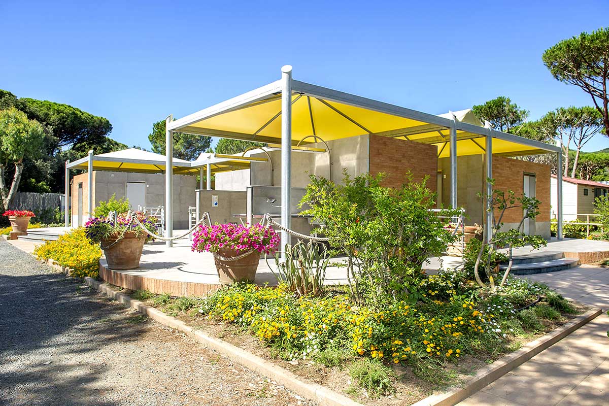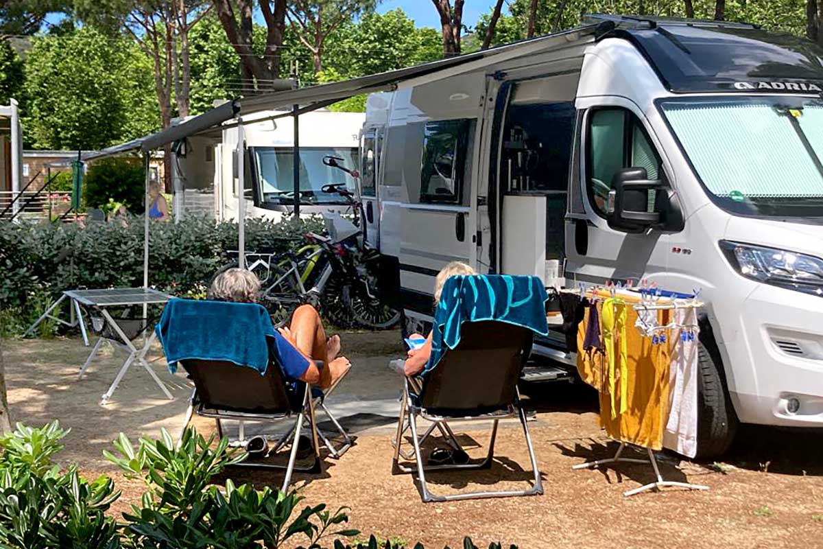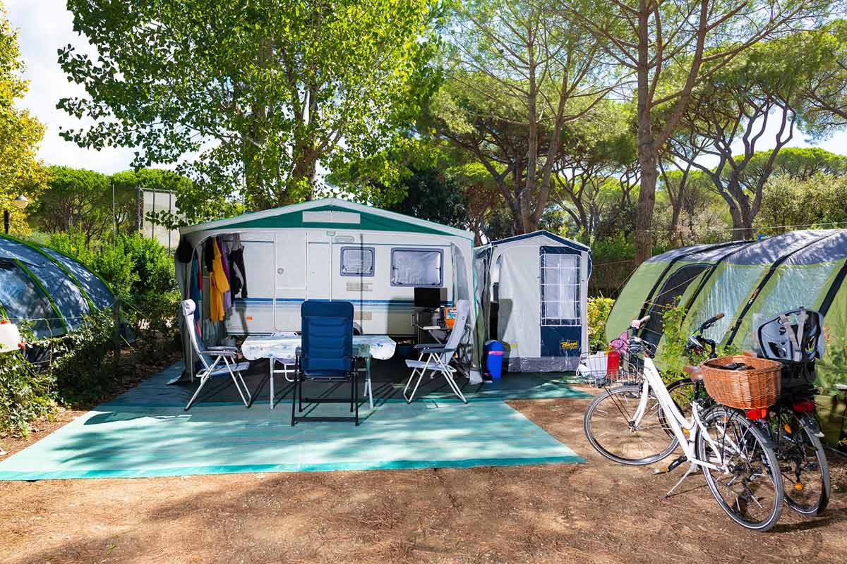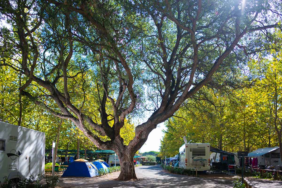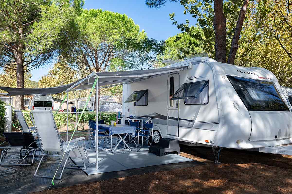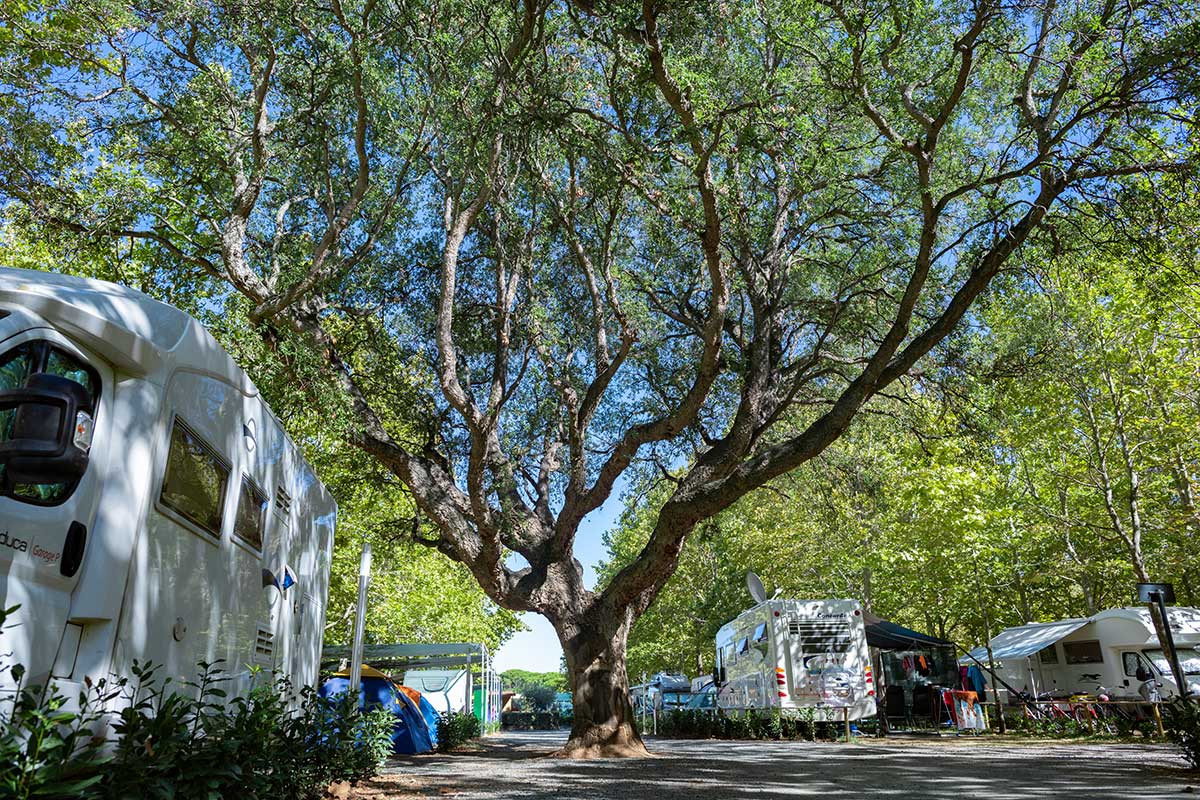 La maggior parte delle piazzole sono spaziose fino a 90 m2 e sono ombreggiate in modo naturale grazie alla presenza di platani e pini, tipica vegetazione della Maremma Toscana, mentre alcune sono provviste di teli ombreggianti.
