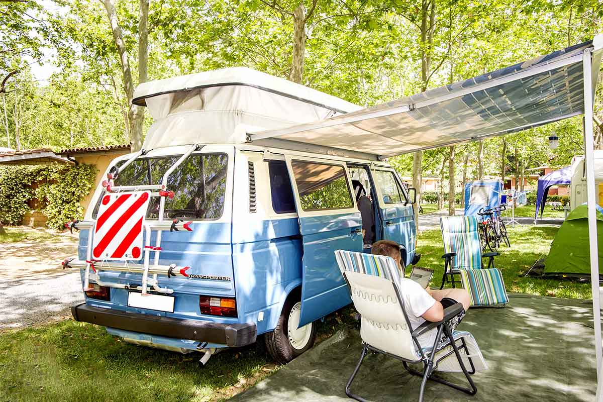 Le piazzole dell'area Camping sono di diverse dimensioni per permettere ad ogni tipologia di Camper, Campervan, Motohome, Roulotte o Tenda di avere il giusto spazio e con la dotazione fino a16 Ampere.